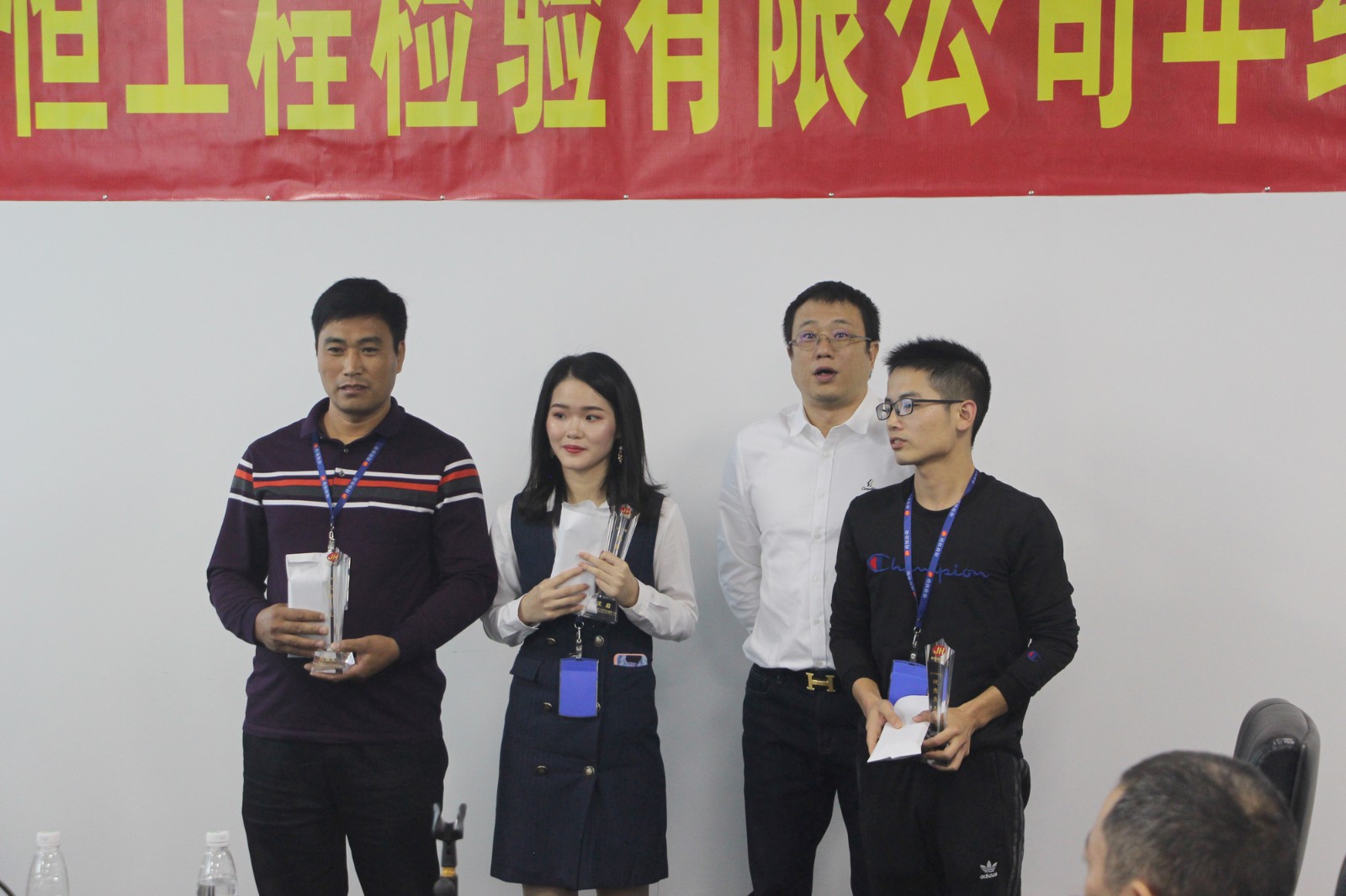 会议上,公司领导对过去一年里所取得的成就给予了充分肯定,也提出了一些问题,让我们去进步。前进的道路上不可或缺的就是标杆,他们,是今朝的风流人物,是精恒公司一年一度的优秀员工,是我们每一位员工为之努力的目标。会议在优秀员工的表彰中迎来高潮,青春年少,激情飞扬,榜样的激励作用是不可低估的。